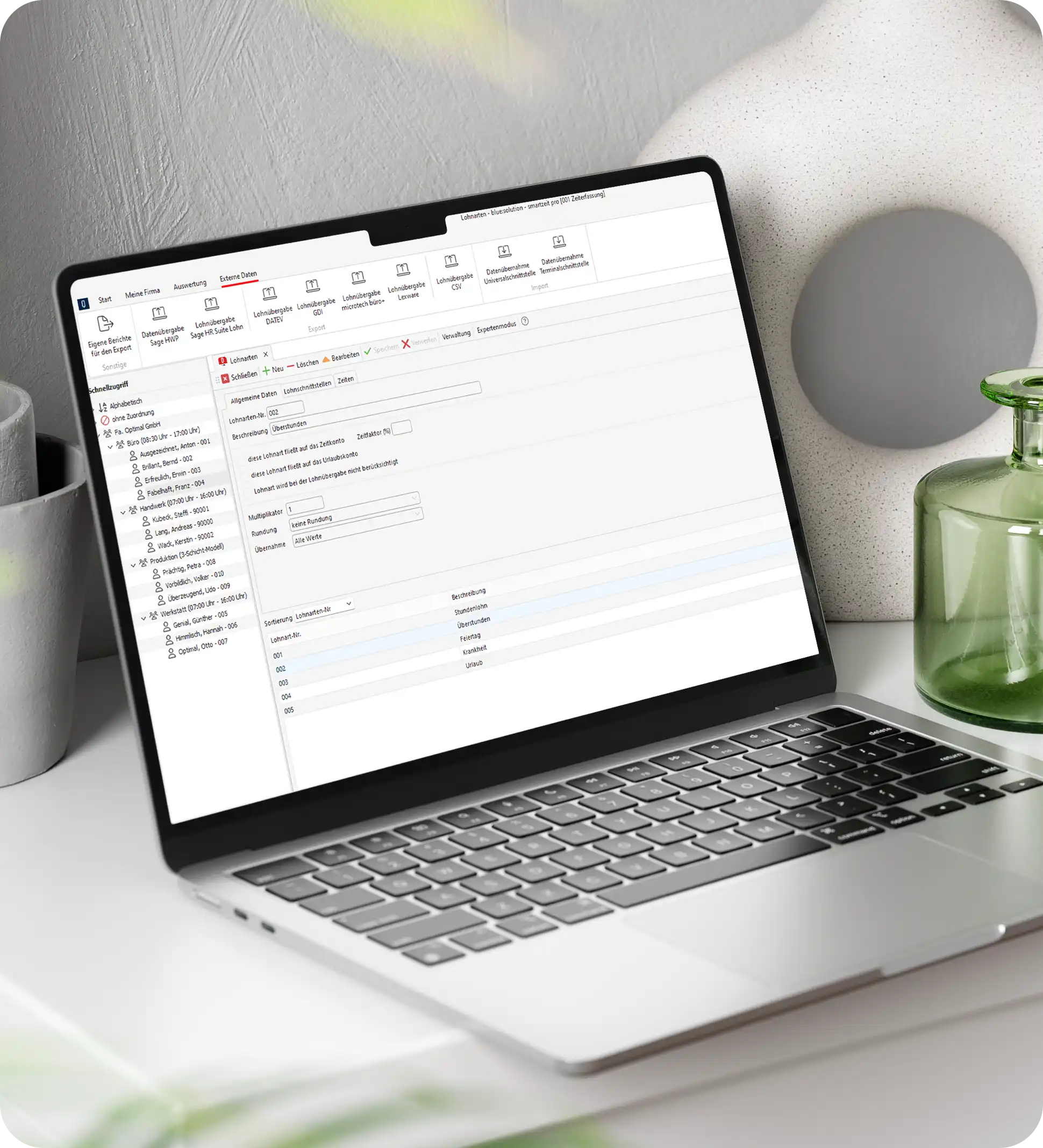 Mit diesem Modul können Lohnarten konform zu Ihrem Lohnprogramm angelegt werden und durch praktische Schnittstellen (z.B. DATEV) effizient an Ihre Gehaltsabrechnungssoftware übergeben werden.